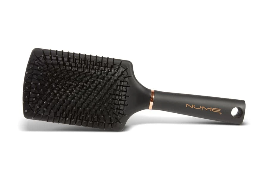 Perfect for any hair thickness, wet or dry hair, the NuMe paddle brush is durable and effective. Micro beaded tips glide smoothly over the scalp, which feels tender to hair and scalp, and cushioned padding adjusts to the shape of the head for a gentle pass each time. Great for a comfortable hair styling experience.